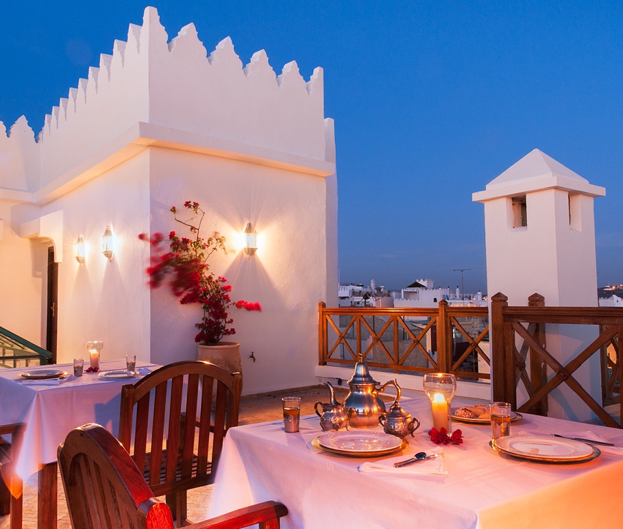 As part of the enchanting experience, guests are treated to a complimentary breakfast served on the rooftop terrace, offering a breathtaking vista that extends over the bustling medina and sweeps down to the graceful arc of the bay. This delightful meal includes a delectable selection of French pastries, freshly baked Moroccan bread, and more. On a clear day, the view is nothing short of spectacular, offering glimpses of the iconic Rock of Gibraltar and the coastal town of Tarifa, Spain, just a 35-minute boat ride away.