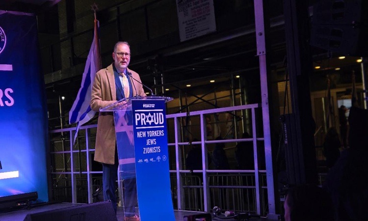 Signs distributed by organizers read “Proud Jews. Proud Zionists. Proud New Yorkers.” — a phrase that quickly became the night’s unofficial anthem.